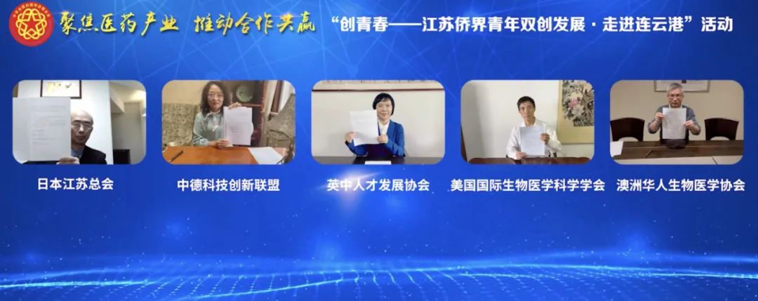 活動中,集團公司通過線上方式,與日本江蘇總會、中德科技創(chuàng)新聯(lián)盟、英中人才發(fā)展協(xié)會、美國國際生物醫(yī)學學會、澳洲華人生物醫(yī)學科學協(xié)會等海外僑社團簽署了合作意向書;集團公司國際醫(yī)藥創(chuàng)新產業(yè)園與4家省內僑青企業(yè)現場簽訂合作協(xié)議。