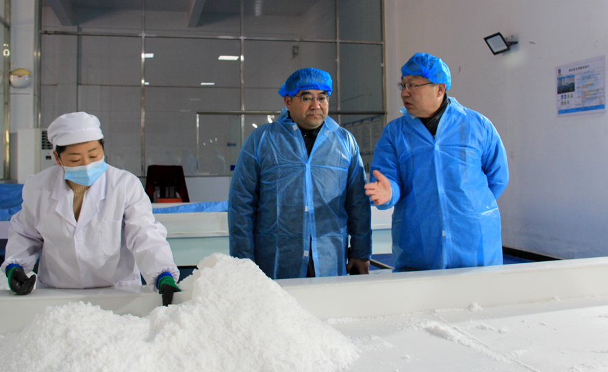 楊龍察看了金橋制鹽公司雪花鹽車間、加工鹽車間、包裝鹽車間生產(chǎn)現(xiàn)場,詳細(xì)了解企業(yè)近期的產(chǎn)品生產(chǎn)銷售情況,要求該公司要繼續(xù)抓好疫情防控、產(chǎn)品市場開拓和冬季安全生產(chǎn)工作。