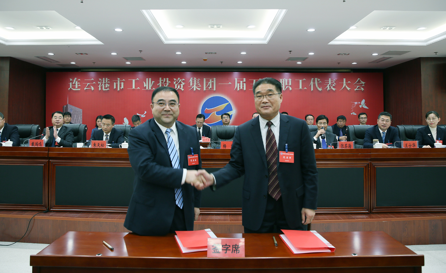 藍(lán)圖繪就,正當(dāng)揚(yáng)帆破浪;重任在肩,更須策馬揚(yáng)鞭。1月14日上午9時(shí),在雄壯的國歌聲中,集團(tuán)公司一屆五次職工代表大會(huì)在總部隆重召開,來自各條戰(zhàn)線的職工代表肩負(fù)全體工投人的重托,齊聚一堂,共商企業(yè)發(fā)展大計(jì)。黨委書記、董事長楊龍作講話,總經(jīng)理胡建明作工作報(bào)告。黨委副書記戴鴻鳴、工會(huì)主席劉承志分別主持大會(huì)。集團(tuán)公司領(lǐng)導(dǎo)楊國新、張其海、朱天松、王士華、汪群、匡友本、陳如軍在主席臺(tái)前排就座。