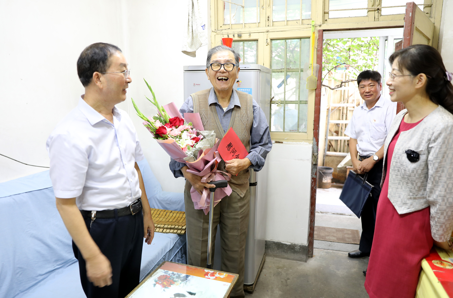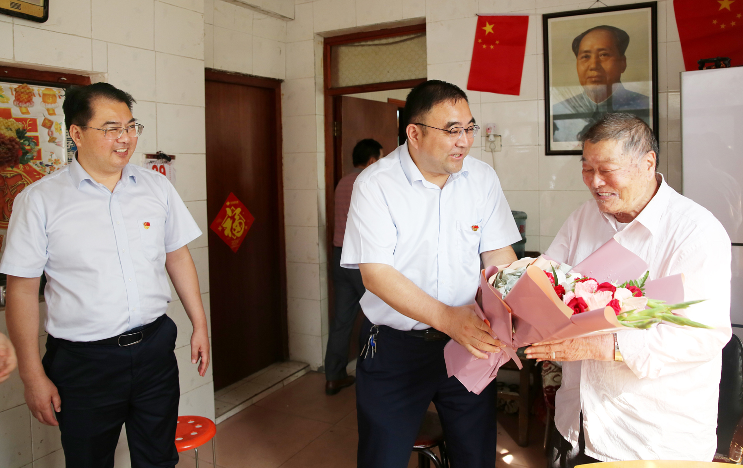 國(guó)慶前夕,9月29日上午,集團(tuán)公司董事長(zhǎng)、黨委書(shū)記楊龍,總經(jīng)理胡建明、黨委副書(shū)記戴鴻鳴、紀(jì)委書(shū)記汪群等領(lǐng)導(dǎo)分組走訪慰問(wèn)部分建國(guó)前參加工作的老黨員、老干部,為他們送去慰問(wèn)金和鮮花,同慶新中國(guó)七十周歲華誕。