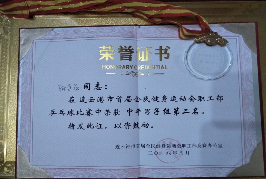 8月4日至5日,市首屆全民健身運(yùn)動會職工部乒乓球比賽在神鷹碳纖維乒乓球館舉行,我公司選派3名運(yùn)動員參賽。經(jīng)過五輪的激烈角逐,孫連召獲中年組亞軍。