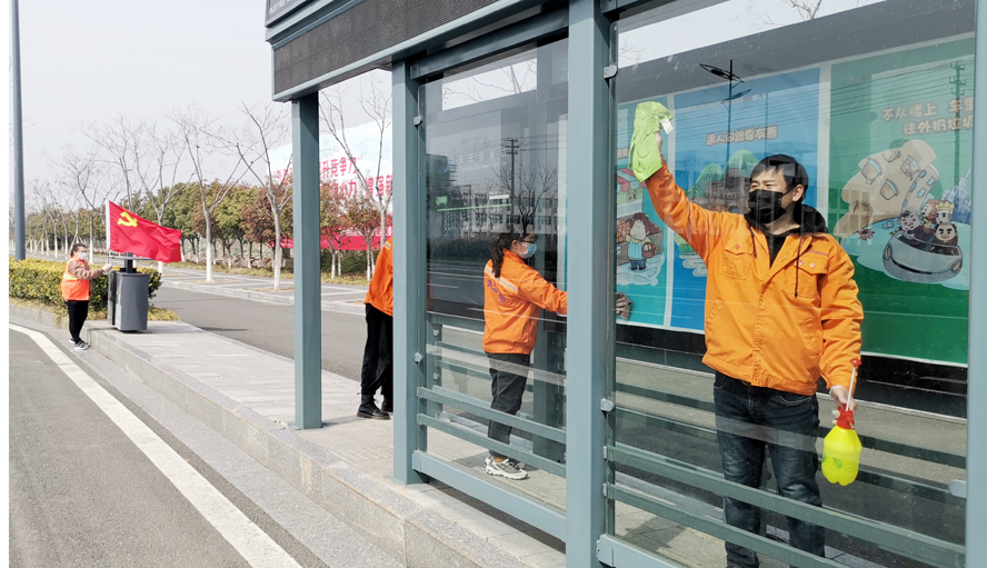 環(huán)衛(wèi)工作并不止每天清掃路面垃圾那么簡單,還要清洗路面、擦拭垃圾桶、清理下水道、鏟除墻面電線桿上的小廣告等,每一項都費時費力。疫情期間,更是增加了不少工作量。鹽池西路段和躍湖路幾家工地施工嚴重污染路面,要和施工方協(xié)調(diào)清理路面黃斑;疫情期間除了日常保潔工作外,還要負責周邊、站臺、垃圾桶、果皮箱和護欄等的消殺、消毒工作,以及每天對環(huán)衛(wèi)工和綠化工發(fā)放口罩和測試體溫工作,耐心與員工談心疏導員工情緒。