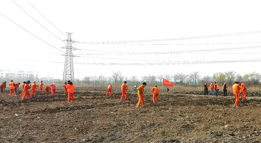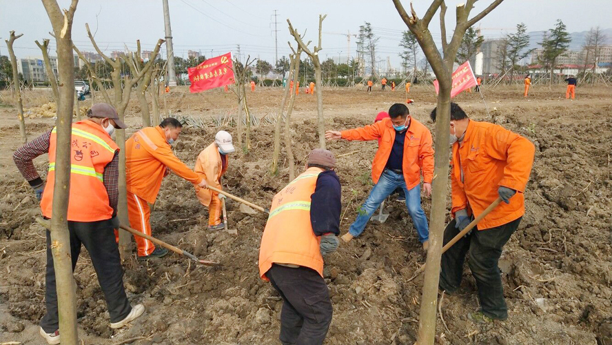 為保證植樹質(zhì)量,該公司配備多名專業(yè)技術(shù)人員進(jìn)行全程技術(shù)指導(dǎo)。上午8時(shí)許,在移苗現(xiàn)場(chǎng),一臺(tái)挖掘機(jī)轟隆隆地作業(yè)著,小心翼翼的將一棵棵大樹苗連根拔起,在保證不擠壓的情況下,輕抬輕放,裝苗運(yùn)輸。在栽苗活動(dòng)現(xiàn)場(chǎng),全體工作人員戴好頭罩、手套等防護(hù)用具,在統(tǒng)一指揮下,彼此間隔1米左右,擼起袖子、揮著鐵鍬、扛著鋤頭飛快地投入到栽苗植樹作業(yè)中。大家分工協(xié)作,有的開槽挖坑;有的栽植樹苗;有的抬木扶苗;有的回填新土;有的纏繩護(hù)樹;有的澆水保濕……到處都是忙碌的身影,整個(gè)植樹活動(dòng)現(xiàn)場(chǎng)一片熱火朝天的繁忙景象。放眼望去,在明媚的春光中,一排排新栽下的樹苗迎風(fēng)挺立,生機(jī)勃勃,組成了一道道靚麗的風(fēng)景線。