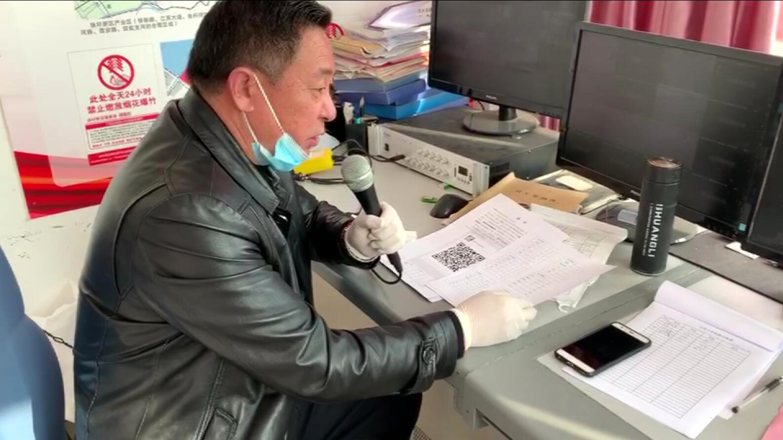 “居家不出門、安全有保證,每天勤洗手、病毒不找你”“陳先生、王阿姨、崔某某您好!您需要的生活用品、藥品、快遞到了,請到大門口,麻煩出來取一下,祝您們健康平安”。每天上午10時,當過工長的孫大軍用上了久違的大喇叭,標準的老鹽場“普通話”,溫馨真誠的“防控宣言”,讓居家隔離人員感受到了組織的溫暖,并架起了一座隔離不隔心的“連心橋”。