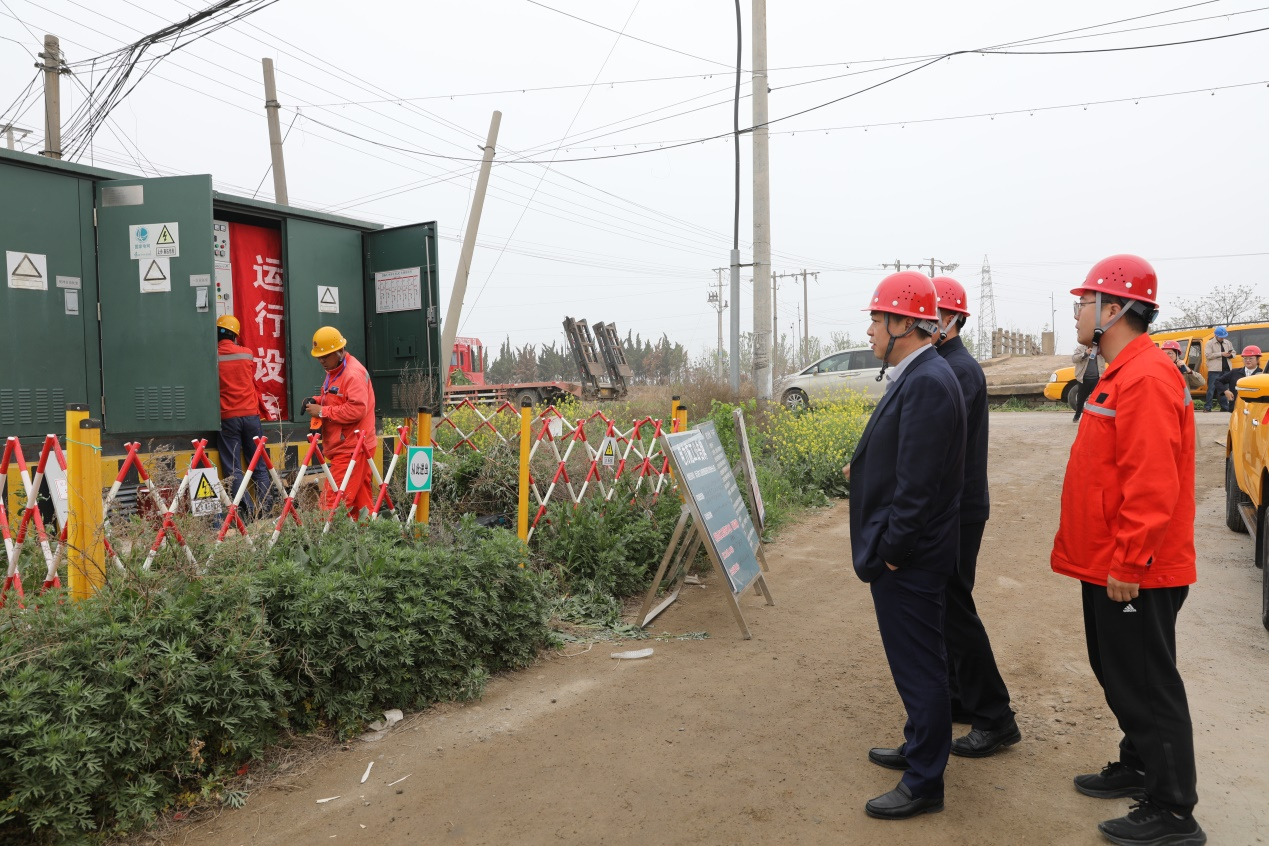 4月20日上午,公司黨委書(shū)記、總經(jīng)理宋晟曄,黨委副書(shū)記、工會(huì)主席李平一行到徐南供電所斷電施工現(xiàn)場(chǎng)進(jìn)行調(diào)研指導(dǎo),徐南供電所所長(zhǎng)周?chē)?guó)成陪同調(diào)研。