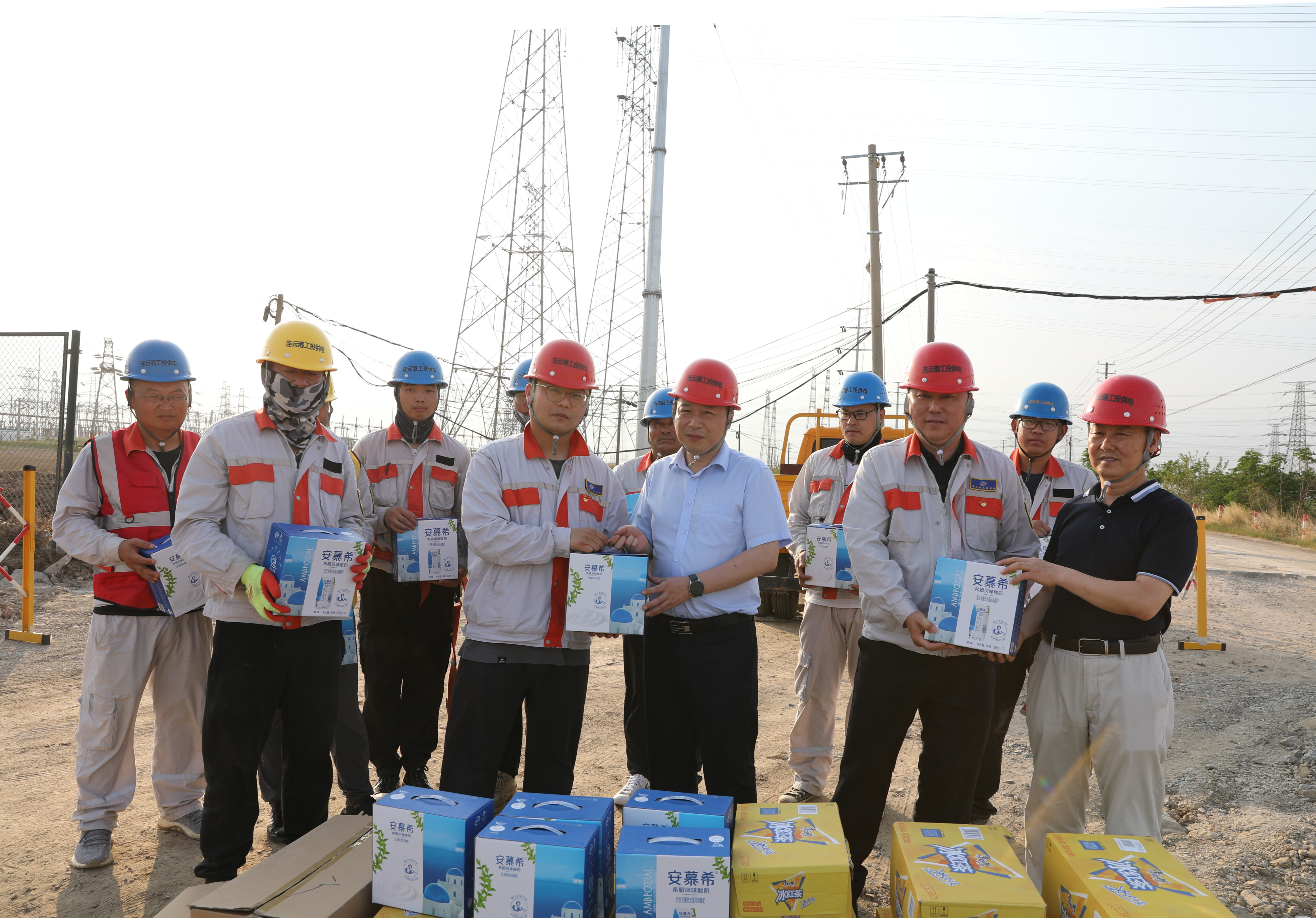 連續(xù)幾天,連云港市進(jìn)入高溫天氣。酷暑當(dāng)頭,德邦廠區(qū)段電力桿線遷改工程施工人員卻堅(jiān)守在施工一線,冒著三十幾度高溫,奮戰(zhàn)在施工現(xiàn)場(chǎng),加班加點(diǎn)保障著工程建設(shè)的進(jìn)度。為切實(shí)做好一線施工人員防暑降溫工作,6月21日下午,公司黨委書(shū)記、總經(jīng)理宋晟曄、黨委副書(shū)記、工會(huì)主席王志軍一行人來(lái)到德邦電力桿線遷改工程的施工現(xiàn)場(chǎng),把冰紅茶、西瓜等防暑降溫物品送到施工人員手中,給堅(jiān)持奮戰(zhàn)在高溫一線的職工送去了公司滿(mǎn)滿(mǎn)的關(guān)懷和夏日里的一份清涼。(邱利益)