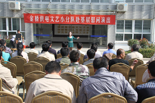 公司自成立以來,一直注重企業(yè)文化建設(shè),利用多種形式活躍基層文化生活,滿足員工多層次、多角度的精神需求。不僅加強(qiáng)基層單位“職工小家”建設(shè),建立了“職工書屋”、職工活動室、乒乓球室、羽毛球活動場地等基礎(chǔ)設(shè)施,還舉辦了職工運動會、籃球賽和文藝演出等活動。不僅發(fā)揮傳統(tǒng)職工文化活動的優(yōu)勢,而且還創(chuàng)新具有時代特色文化活動的形式,不斷增強(qiáng)員工的凝聚力和向心力。通過本次深入基層慰問演出,不僅為戰(zhàn)斗在一線的基層職工獻(xiàn)上一份精神“大餐”,同時也展示了金橋供電的良好作風(fēng)和企業(yè)形象。(趙艷)