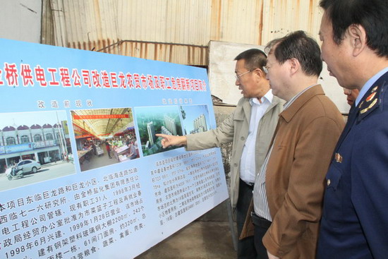 在巨龍農(nóng)貿(mào)市場,范總向秦國丞副秘長簡要匯報了巨龍農(nóng)貿(mào)市場的基本情況以及改造方案,通過改造實現(xiàn)市場空間布局合理化、設施建設標準化、長效菅理規(guī)范化的總體目標。秦國丞副秘書長對公司巨龍農(nóng)貿(mào)市場的改造方案給予較高評價,充分肯定了公司在創(chuàng)建國家文明衛(wèi)生城市、加強我市菜藍子工程建設、提升群眾幸福指數(shù)方面作出的貢獻;同時,要求我公司繼續(xù)深入調(diào)研,盡快制定具體實施方案,報政府部門審批;并指示隨行的有關(guān)部門人員,要給予全力配合,對改善民生工程開綠燈。(司宣 盧正清)