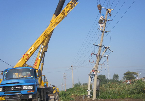 圖為工人們在搶修 9月29日凌晨1點20分,青口供電所同桿架設(shè)的10KV大新線、新站線3號桿和幸福村的72號臺變被拉挖掘機汽車撞斷,造成大新線、新站線和幸福村100多戶居民斷電。為盡快恢復供電,該所領(lǐng)導安排人員備料、施工,從凌晨5點一直工作到下午1點鐘,兩條高壓線路恢復供電,下午4點鐘幸福村臺變也搶修完畢。(宋中文)