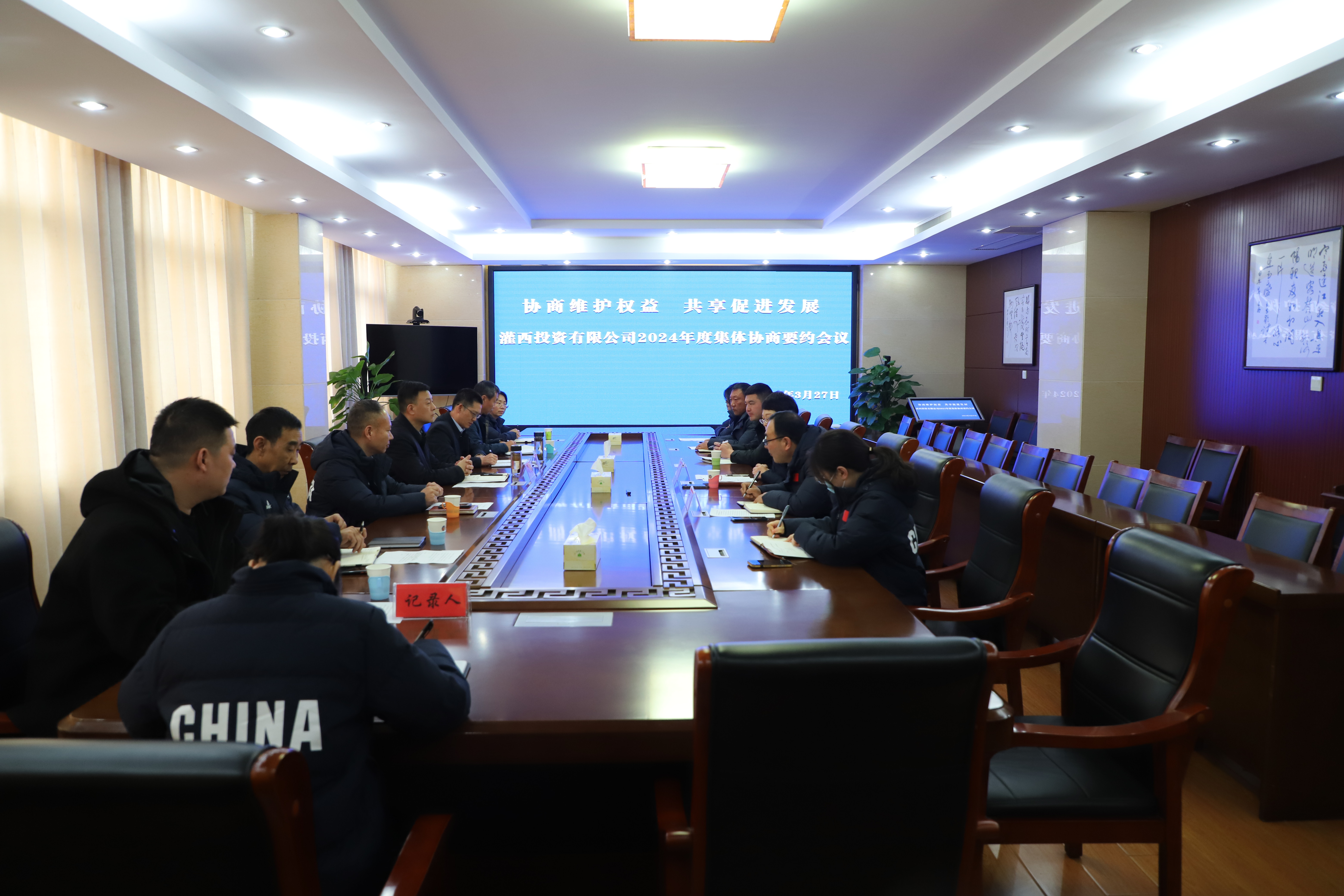 “2023年,兩大公司實(shí)現(xiàn)營(yíng)業(yè)收入3.21億元,利潤(rùn)8563.59萬(wàn)元,為讓職工與公司共享發(fā)展成果,我方建議2024年職工工資增漲比例為8%-10%”“我們承諾,灌西職工的工資增漲比例將走在集團(tuán)前列”.....來自心底最真實(shí)的掌聲在灌西投資公司集體協(xié)商要約會(huì)上頻頻響起。