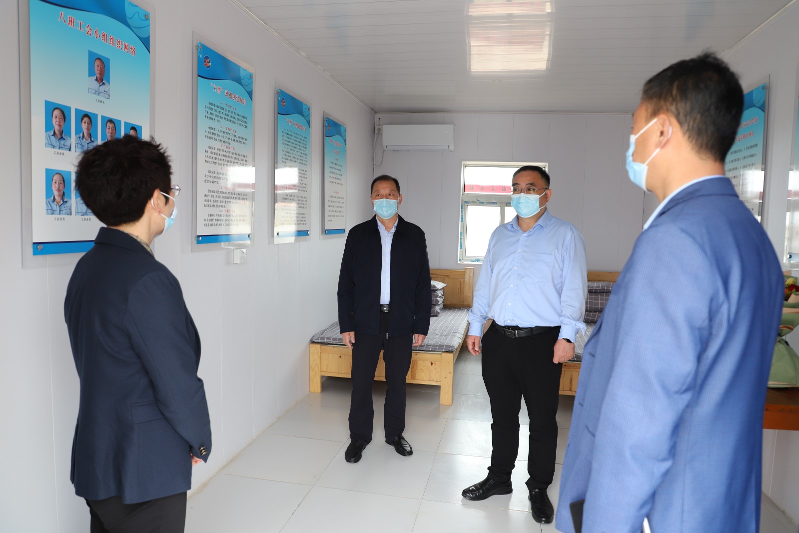 在“五一”國際勞動節(jié)來臨之際,集團(tuán)公司黨委書記、董事長楊龍?jiān)诩瘓F(tuán)公司辦公室主任王力、機(jī)關(guān)黨委書記黨群工作部副部長馮家道等陪同下對我公司的勞模代表進(jìn)行走訪慰問,并為他們送來節(jié)日的祝福,公司黨委書記、董事長、總經(jīng)理李國文、常務(wù)副總經(jīng)理吳衛(wèi)平、黨委副書記工會主席王宏陪同慰問。