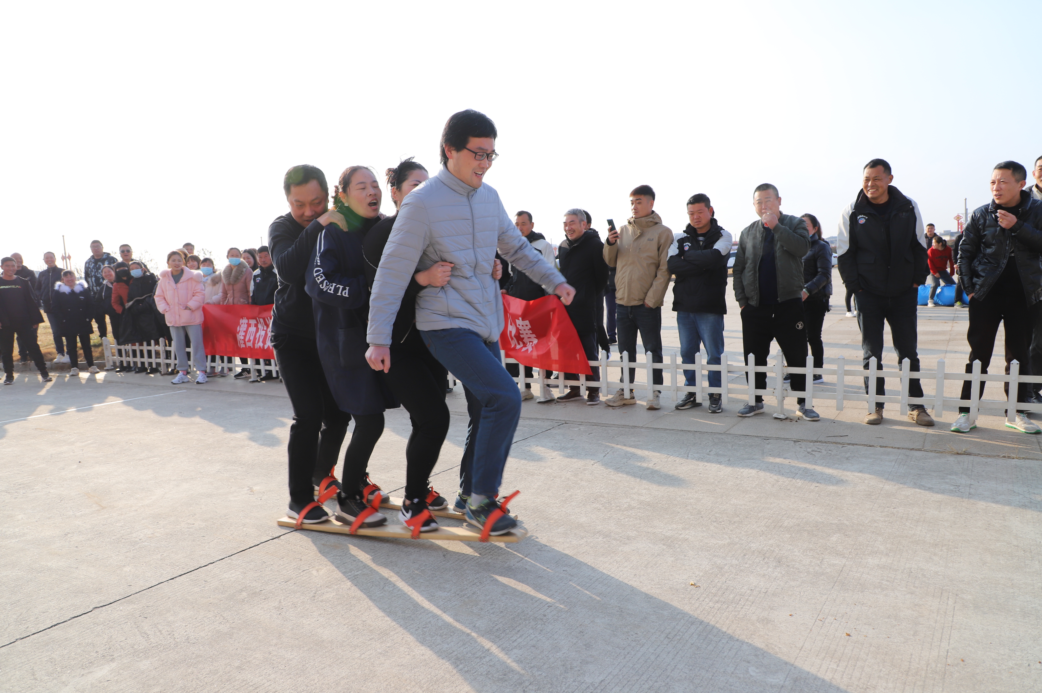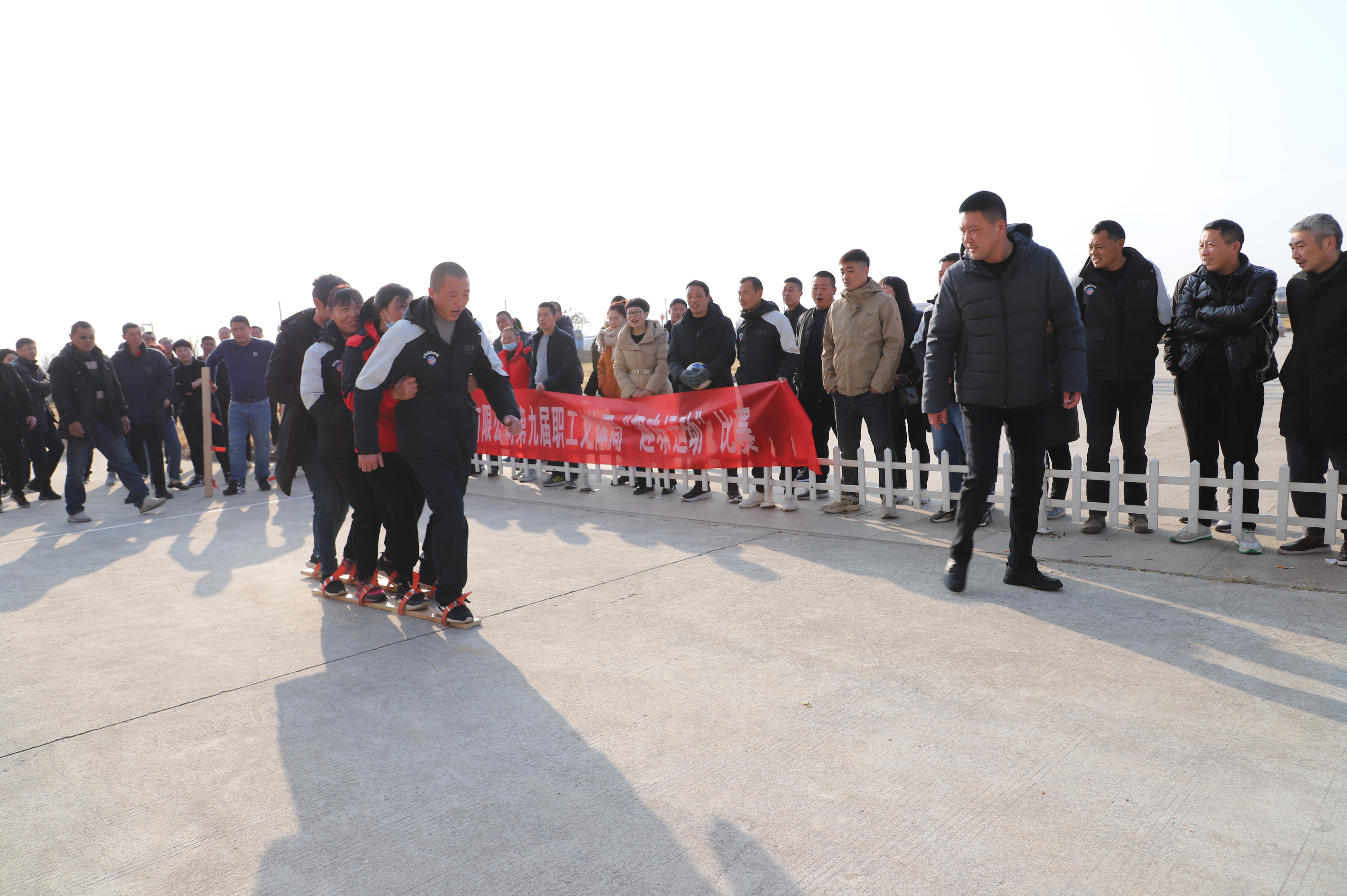 12月23日上午,投資公司第九屆職工文體周趣味運(yùn)動(dòng)比賽在機(jī)關(guān)大樓廣場(chǎng)開賽,公司各單位組織十支隊(duì)伍參加比賽,考驗(yàn)著各參賽隊(duì)選手之間配合與協(xié)調(diào)性。缺少默契的隊(duì)伍,沒(méi)走幾步就人仰馬翻,反觀配合默契的隊(duì)伍一往直前,奔向終點(diǎn)。新河制鹽分公司代表隊(duì)隊(duì)員的運(yùn)動(dòng)鞋被同伴踩掉,依然沒(méi)有放棄比賽,赤著一只腳完成了比賽,充分體現(xiàn)了團(tuán)隊(duì)精神,也充分展示了灌西職工的良好精神風(fēng)貌。