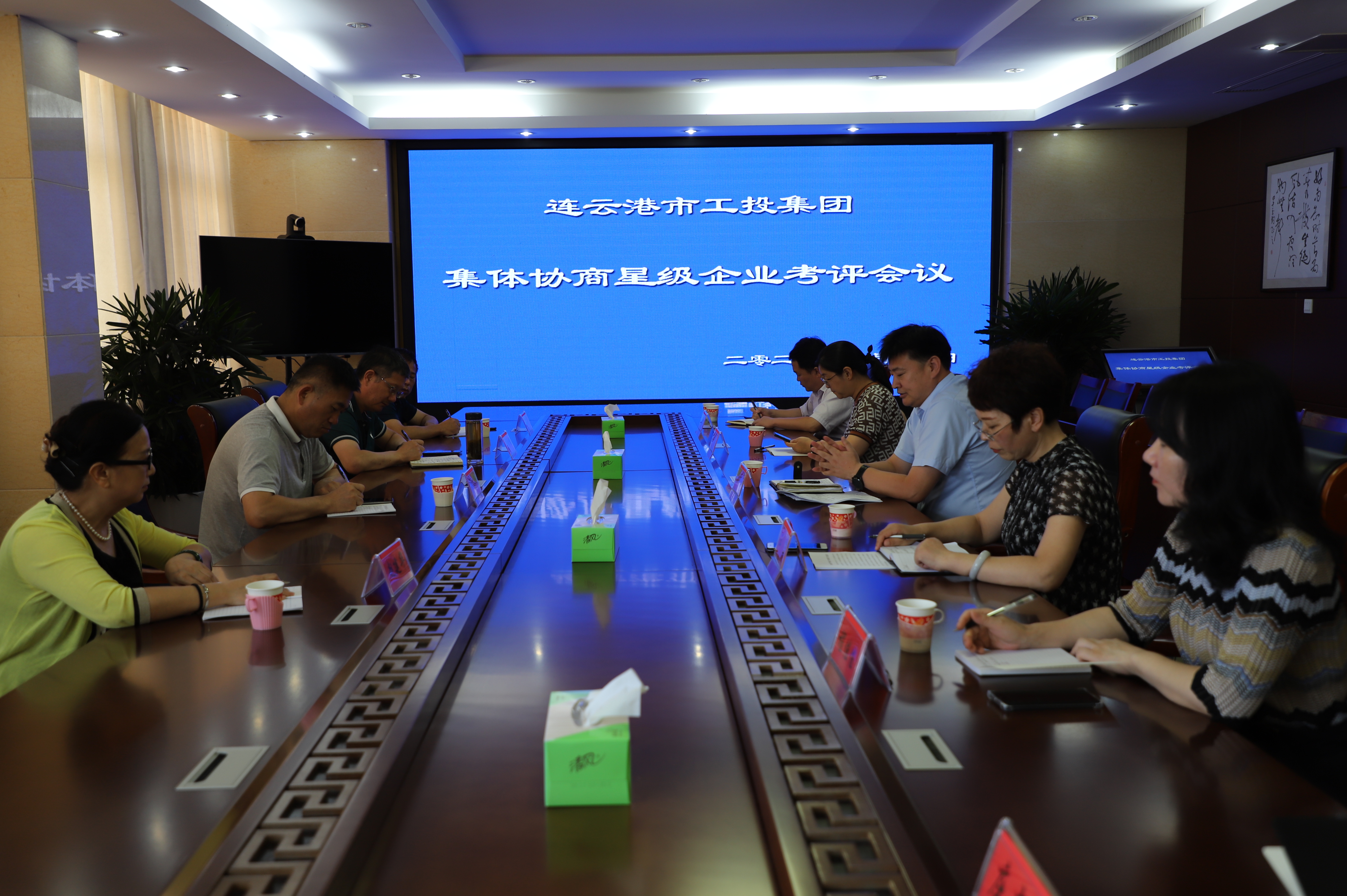 最后,在三樓會(huì)議召開集體協(xié)商星級(jí)企業(yè)考評(píng)會(huì)議,就集團(tuán)公司工會(huì)集體協(xié)商工作開展情況進(jìn)行了座談交流,并查看了灌西公司的集體協(xié)商臺(tái)賬。