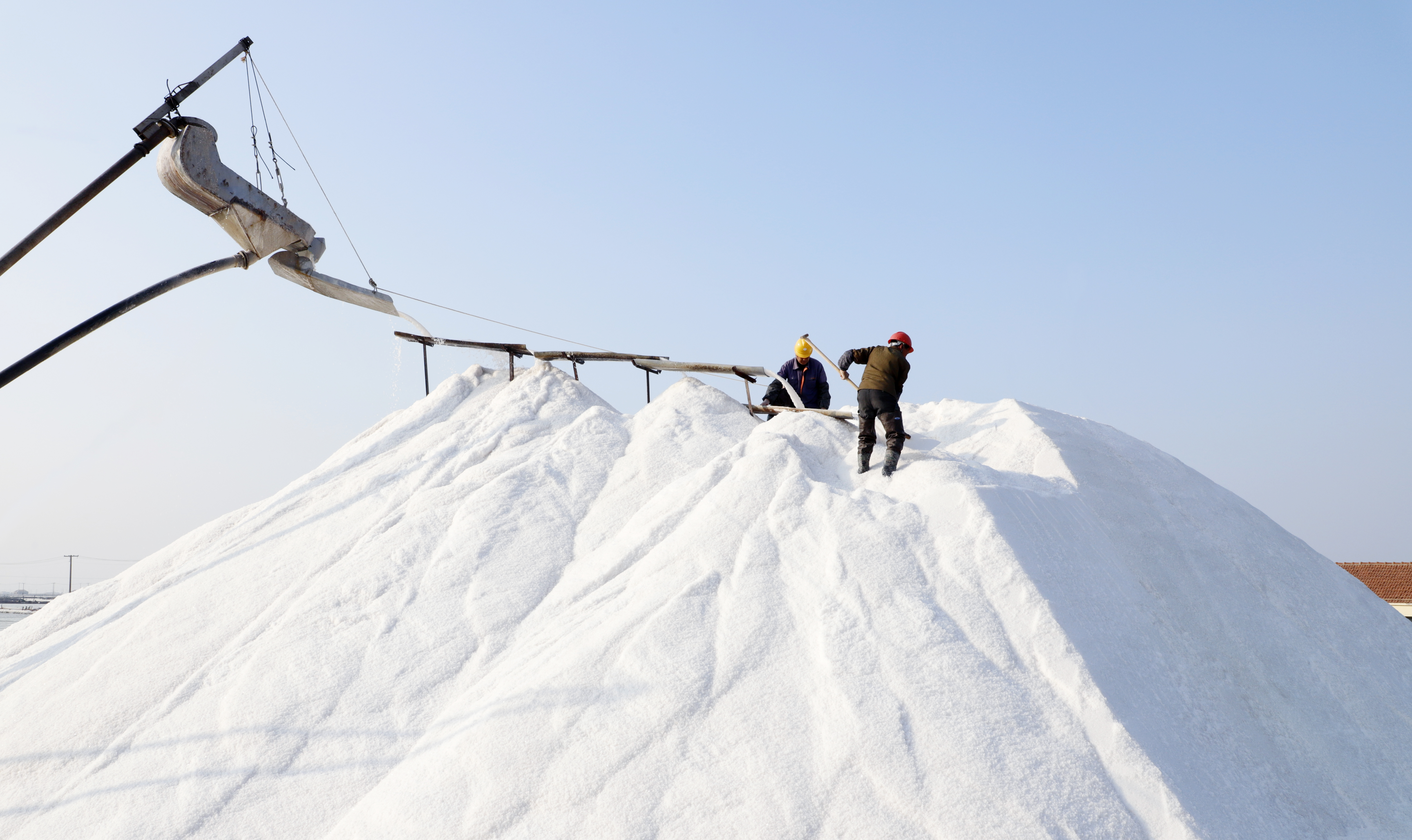 “春種一粒粟,秋收萬顆子”。又是一年春季,在大地上撒下種子,等待秋季收獲糧食。3月4日,日曬制鹽公司萬畝鹽田機(jī)器轟鳴,一池池“雪鹽”銀光閃閃,一條條“銀瀑”臨空而下,這里不是平日里土地上的春耕春種,而是利用潮汐收集海水,風(fēng)能、太陽能蒸發(fā)制鹵,最后結(jié)晶成鹽。