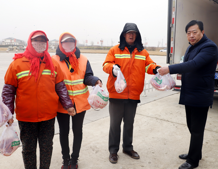 市總工會一行首先向身著環(huán)衛(wèi)工馬甲排成整齊隊(duì)伍的40余名南翼一線環(huán)衛(wèi)工人送上市總工會冬日里的問候。隨后,為南翼一線環(huán)衛(wèi)工人發(fā)放了豬肉等慰問品,讓堅(jiān)守在一線的環(huán)衛(wèi)工人感受到市總工會的溫暖和關(guān)懷。