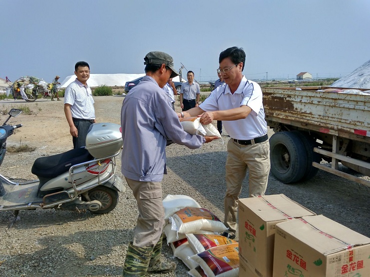 “我家正好沒米了,不用再買了,就嘗一嘗我們鹽場的特產(chǎn)‘鹽田玉’大米”,埒南制鹽分公司五班的一名員工一邊接過米和油,一邊高興地說到。李國文總經(jīng)理一行在埒南制鹽分公司各班組慰問,每到一個(gè)班組,就分別給員工遞上慰問品,對(duì)他們堅(jiān)守崗位辛勤努力工作表示感謝,致以節(jié)日的問候。員工們都非常樸實(shí)地表示他們會(huì)安心工作,保障節(jié)日期間不誤生產(chǎn)。
