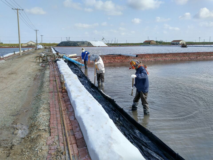 國慶假日前兩天的連天雨,讓大家好不容易盼來的七天長假打了折扣,人們走親訪友出行旅游都帶來了不便,七十多毫米的降雨量也影響到了公司鹽業(yè)生產,廣大員工堅守崗位值好班。生產服務人員24小時觀察天氣狀況,跟蹤分析發(fā)布天氣預報,指導生產,各班組鹽工堅守崗位,加強塑池管理,檢查排淡口門,及時排出淡水。3號天氣轉好,廣大鹽工及時收布,整理塑池,轉換到正常生產管理中來。同時,啟動扒鹽工作,安裝機泵管道,調配扒鹽鹵水,嚴格執(zhí)行安全扒鹽操作規(guī)程,3日晚開始投入到正常的扒鹽中來。鹽灘上勞作的鹽工在一條條潔白的鹽廩襯映下格外美麗。(季興勝)