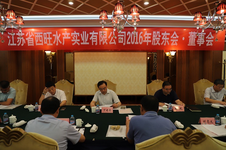 8月24日,江蘇省西旺水產(chǎn)實業(yè)公司2016年股東會、董事會在墟溝召開,省沿海開發(fā)集團總經(jīng)理丁建奇、副總經(jīng)理周金陽,連云港市工業(yè)投資集團董事長楊龍、總會計師匡友本等股東代表、董事代表出席了會議。