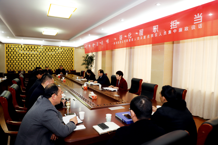 為進(jìn)一步推進(jìn)公司黨風(fēng)廉政建設(shè),提高黨員干部廉潔自律意識,4月11日上午,灌西公司組織開展“堅守廉潔底線強(qiáng)化履職擔(dān)當(dāng)”2019年新提拔人員及重點崗位人員集體廉政談話,黨委書記、董事長、總經(jīng)理李國文,黨委副書記、紀(jì)委書記、工會主席王宏,新提拔人員以及重點崗位人員參加了廉政談話。