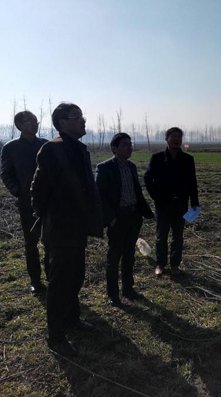 圖為范新軍和公司班子成員、生產(chǎn)骨干一起選購綠化樹苗。