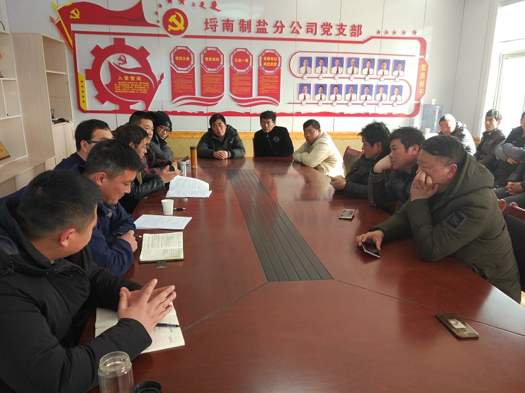 1月28日下午,埒南制鹽分公司組織所有黨員、管理人員、班組長對職代會精神進行了學習。 會上,支部書記莊忠明帶領大家學習了李國文董事長在職代會上的工作報告,經(jīng)理楊守斌解讀了日曬制鹽班組生產(chǎn)承包責任制,并對下一步工作進行了部署安排,他要求大家要認真貫徹落實職代會精神,要團結(jié)一致、迎難而上,為實現(xiàn)公司3000萬利潤任務目標而努力奮斗。