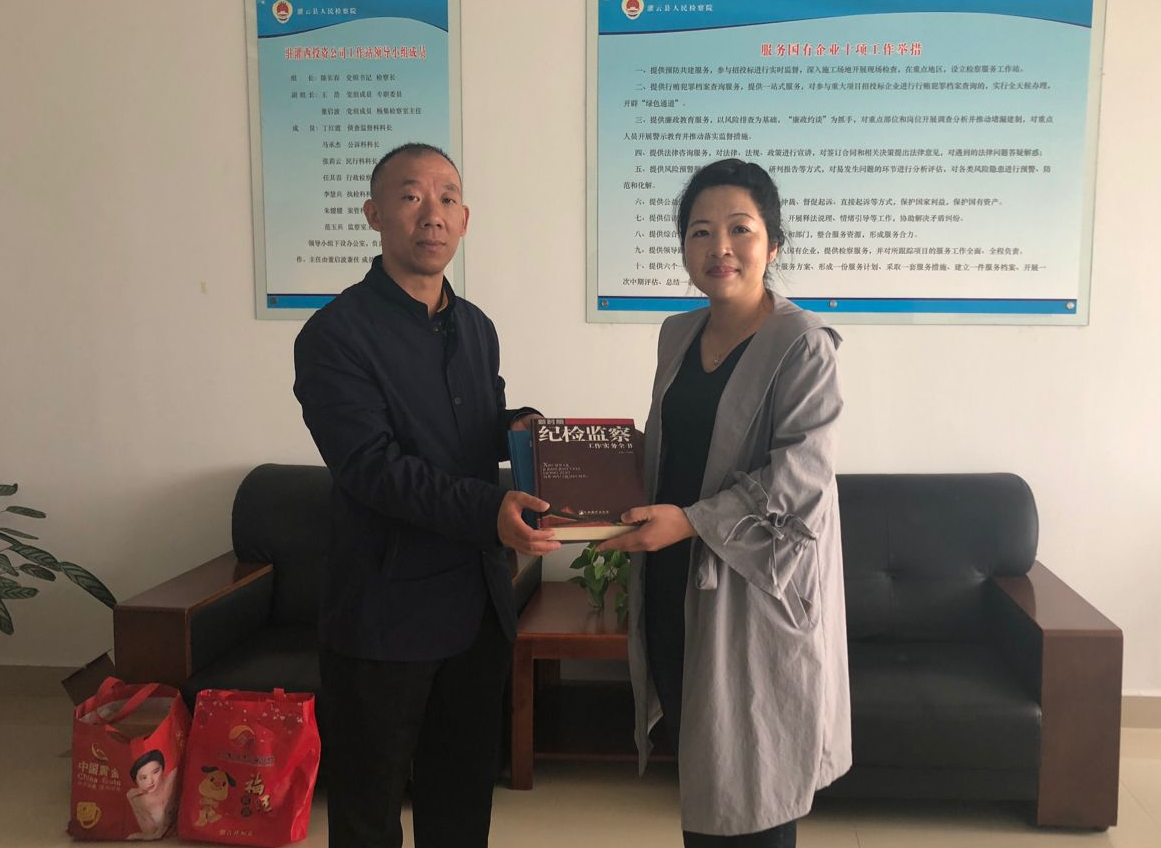 10月17日,灌云縣檢察院監(jiān)察室主任范玉兵來我公司調(diào)研工作,進一步加強檢察院與企業(yè)溝通和了解,促進“檢企共建”活動深入開展。