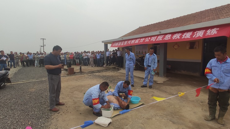 近日,新河制鹽分公司在新河0班開(kāi)展高溫天氣防中暑應(yīng)急救援演練活動(dòng),投資公司領(lǐng)導(dǎo)、新河制鹽分公司管理人員、各班組長(zhǎng)、工人觀看了應(yīng)急救援演練。
