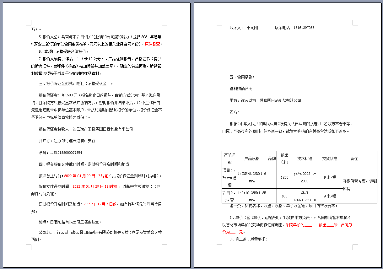 連云港市工投集團(tuán)日曬制鹽有限公司管道采購項(xiàng)目 公開采購文件