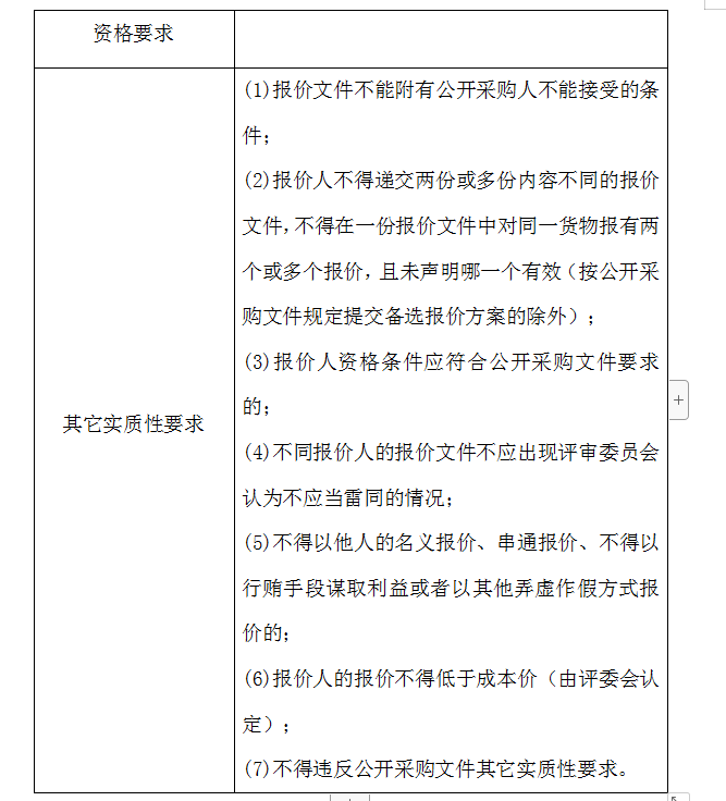 2、評(píng)審委員會(huì)將根據(jù)以下標(biāo)準(zhǔn)對(duì)各報(bào)價(jià)人進(jìn)行初步評(píng)審,有一項(xiàng)不符合要求的,作否決報(bào)價(jià)處理,不進(jìn)入詳細(xì)評(píng)審。
