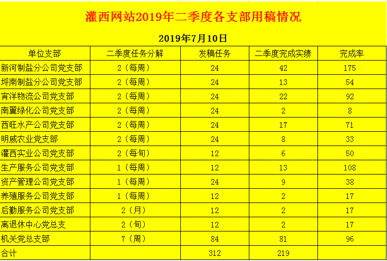 灌西網(wǎng)站2019年二季度各支部用稿情況
