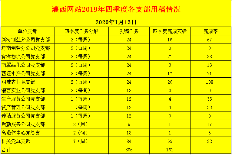 灌西網(wǎng)站2019年四季度各支部用稿情況
