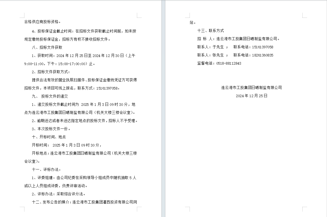連云港市工投集團(tuán)日曬制鹽有限公司五金產(chǎn)品合格供應(yīng)商招標(biāo)公告