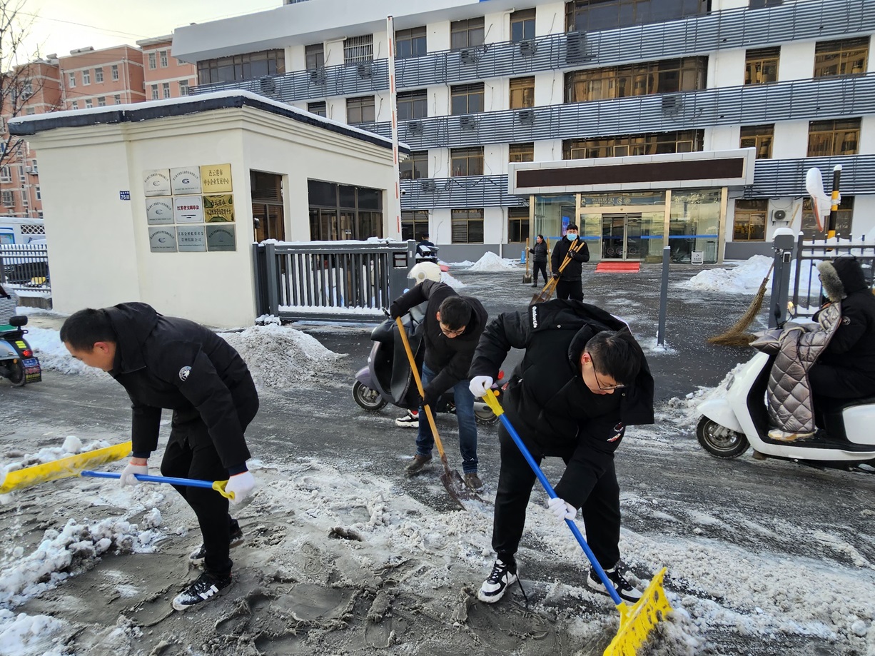 搶干會(huì)干巧勁足。“這塊用雪鏟推就行”“那邊不需要掃,直接撒融雪劑”“換這個(gè),更省力”,掃雪現(xiàn)場(chǎng),大家齊心協(xié)力,組織有序,紛紛施展出自己的“巧勁”。有的員工用鐵鍬鏟雪,有的用掃帚清掃,還有的負(fù)責(zé)運(yùn)輸積雪。一時(shí)間,院內(nèi)響起“叮叮當(dāng)當(dāng)”了鏟雪聲、掃雪聲,匯成了一首團(tuán)結(jié)協(xié)作、搶干會(huì)干的的贊歌。