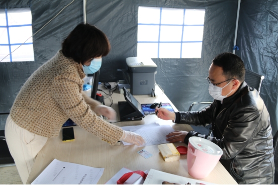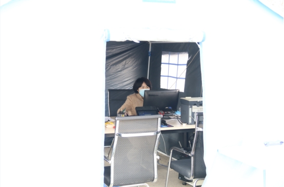 4月6日,工投金融板塊復(fù)工的第一天,來辦理業(yè)務(wù)的人員發(fā)現(xiàn),公司院內(nèi)樹立著一頂嶄新的帳篷,電腦、桌椅、打印機等辦公設(shè)備放置其中,酒精、免洗液、口罩等防疫物資擺放在帳外醒目位置。 這是工投金融板塊為保證疫情期間疫情防控與業(yè)務(wù)服務(wù)兩不誤,專門打造的特色“防疫業(yè)務(wù)服務(wù)窗口”。 正值疫情期間,而金融板塊的業(yè)務(wù)涉及面廣,流程嚴謹,尤其是窗口業(yè)務(wù)所涉及的簽字、蓋章等環(huán)節(jié)都需要與外來人員面對面現(xiàn)場辦理,如何化解因疫情而產(chǎn)生的業(yè)務(wù)開展難題,就成為擺在金融板塊干部職工眼前的一大問題。