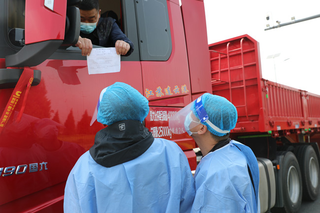 一名黨員就是一面旗幟。在長時間的工作中,黨員志愿者的嗓音變得嘶啞,他們仍然仔細查驗每一位司機的信息,切實做到逢車必查、逢人必測、不漏一車,嚴防死守,牢牢把控疫情傳播的第一道關口,織密織牢疫情防控網。(黃阿鳳)
