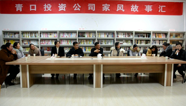 ? ? ? ?12 月 14 日下午,青口投資公司紀委聯(lián)合女工委在職工活動中心舉辦“家風故事匯”活動,九名干部家屬、公司黨委書記、董事長胡傳法,黨委副書記、紀委書記史祥平及青口部分女職工參加了本次活動。
