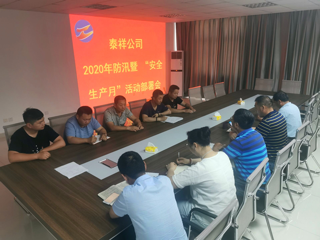 為貫徹落實(shí)青口投資公司防汛暨“安全生產(chǎn)月”活動(dòng)會(huì)議精神,6月3日下午,泰祥公司組織全體人員召開2020年防汛暨“安全生產(chǎn)月”活動(dòng)部署會(huì)。
