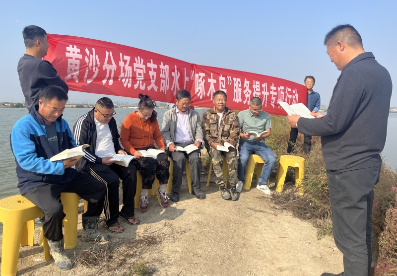 近日,黃沙分場黨支部開展水上“啄木鳥”服務(wù)提升行動,組織養(yǎng)殖戶黨員和技術(shù)能手聚在塘頭學(xué)習(xí)黨的二十大報告,開展養(yǎng)殖技術(shù)培訓(xùn)和生產(chǎn)服務(wù),切實打通黨建引領(lǐng)、服務(wù)養(yǎng)殖的“快速通道”。(盧伯斌)