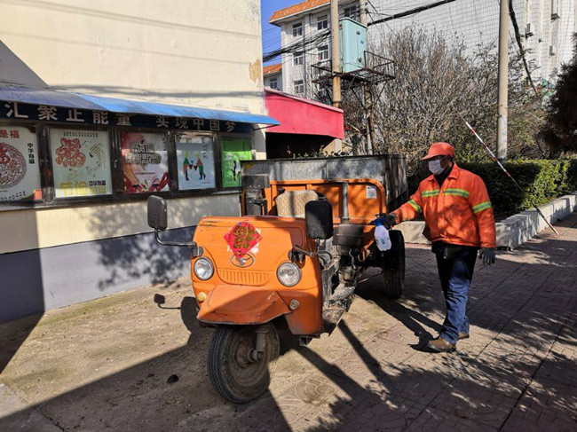 “回家吃完早飯再繼續(xù)清掃!”——多么樸實無華的聲音從環(huán)衛(wèi)工人戴著口罩的笑容下發(fā)出,這是來自生產(chǎn)生活服務(wù)中心環(huán)衛(wèi)班組的響亮聲音。