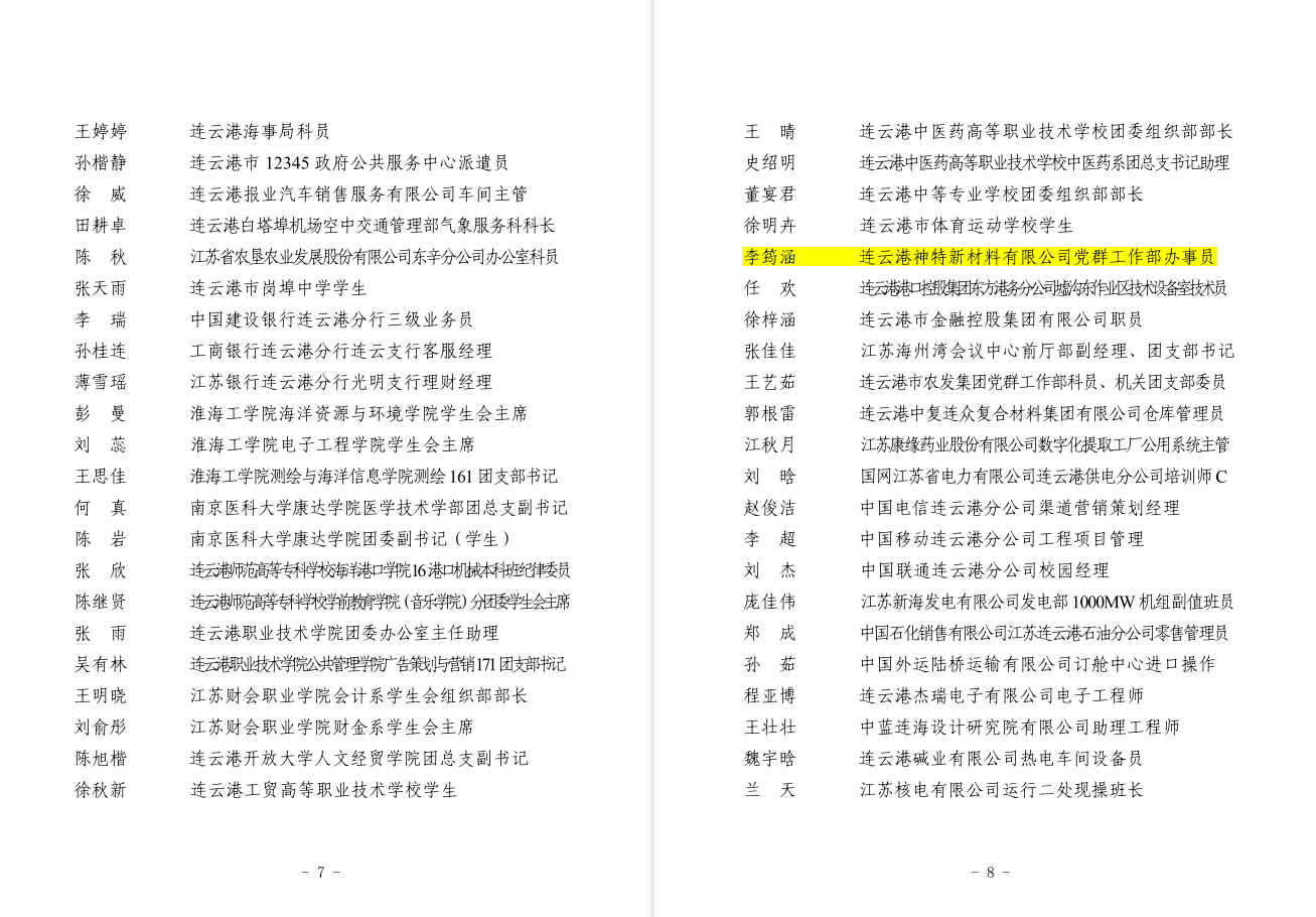 近日,共青團連云港市委員會公布了2018年度“連云港市優(yōu)秀共青團員”“連云港市優(yōu)秀團干部”“連云港市五四紅旗團委”“連云港市五四紅旗團支部”(總支)名單,我公司員工李筠涵榜上有名,被授予“連云港市優(yōu)秀共青團員”稱號。