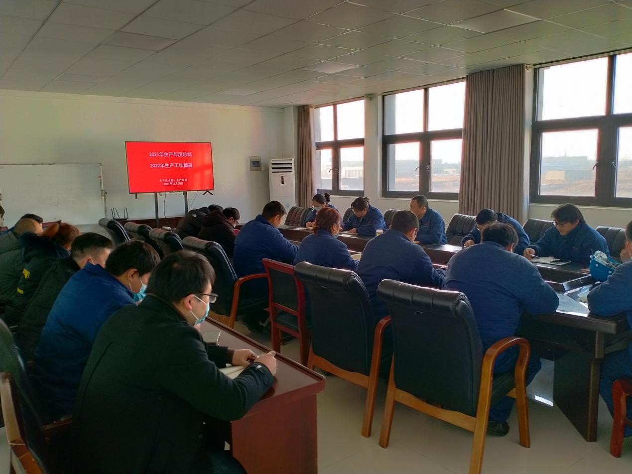 12月29日上午,公司生產(chǎn)技術(shù)部召開2021年生產(chǎn)總結(jié)暨2022年生產(chǎn)工作部署會(huì)議,生產(chǎn)技術(shù)部全體員工、生產(chǎn)班組長(zhǎng)參會(huì)。會(huì)議由公司總經(jīng)理助理李洋主持,生產(chǎn)副總王爽芳出席會(huì)議。