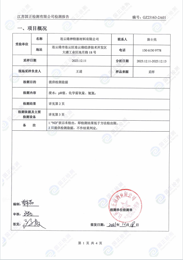2023年第四季度排污檢測報(bào)告