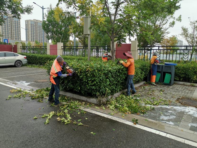 保障園區(qū)“塑新顏”。節(jié)日期間,開發(fā)區(qū)轄區(qū)的主干道上、公園、廣場、支路等公共綠地,隨處可見臺北(華茂)綠化養(yǎng)護(hù)人員堅(jiān)守一線的忙碌身影,他們放棄與家人團(tuán)聚,重點(diǎn)對玉竹路、佟圩路、銀臺路、242 省道等路段綠籬、模紋、草坪進(jìn)行整形修剪,對堿廠南路等路段綠化帶內(nèi)低矮喬灌木進(jìn)行打藥治蟲,對展覽中心、黃海大道等轄區(qū)內(nèi)及時(shí)清理綠化帶雜草、撿拾草根、干枝等綠化垃圾,保持綠化帶干凈整潔美觀。益豐園林分公司綠化班全員放棄節(jié)日休假,外拓市場,與綠化分公司聯(lián)動(dòng)赴徐圩消防大隊(duì)院內(nèi)開展突擊修剪行動(dòng),他們不怕臟、不怕累,共修剪灌木球50余棵,灌木叢7000余平方米。