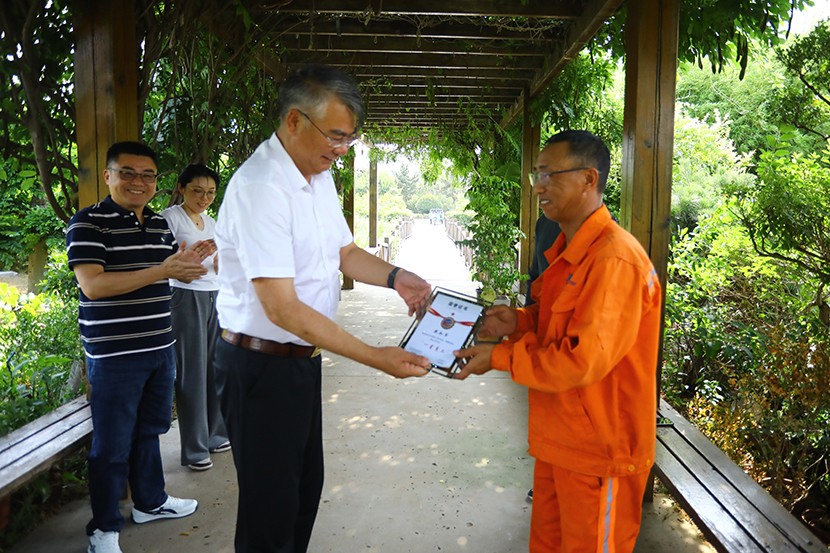 此次頒獎(jiǎng)打破傳統(tǒng)集中表彰模式,將頒獎(jiǎng)臺(tái)搬到生產(chǎn)建設(shè)最前沿,公司領(lǐng)導(dǎo)班子成員親自前往光伏安康驛站、創(chuàng)智綠園、大浦片區(qū)、云橋路施工現(xiàn)場(chǎng)、佟圩路施工現(xiàn)場(chǎng)、益豐園林園區(qū)6個(gè)一線點(diǎn)位,為獲獎(jiǎng)員工頒發(fā)榮譽(yù)證書,并送上暖心祝福。當(dāng)公司領(lǐng)導(dǎo)將“星級(jí)員工”證書遞到員工手中時(shí),獲獎(jiǎng)?wù)唠y掩激動(dòng):“這份榮譽(yù)既是肯定,更是責(zé)任。我會(huì)繼續(xù)扎根基層,為臺(tái)北(華茂)貢獻(xiàn)全部力量!”