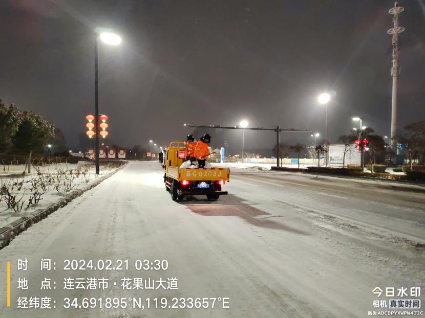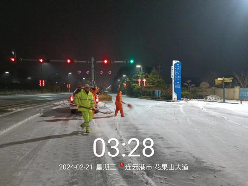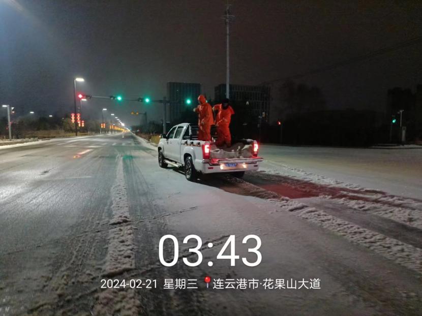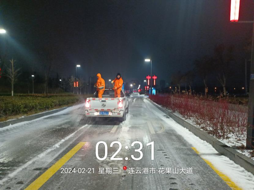受寒潮影響,2月20日下午,港城普降“冰雪+冰粒”,投資公司第一時(shí)間啟動(dòng)惡劣天氣應(yīng)急處置預(yù)案,道路保潔、市政養(yǎng)護(hù)、后勤保障等戰(zhàn)線的干部職工以雪為令,在重點(diǎn)區(qū)域、重點(diǎn)路段、坡道、橋梁、涵洞等結(jié)冰路段進(jìn)行撒鹽融雪融冰作業(yè),全力以赴除冰雪、防事故、護(hù)平安,為市民群眾出行一路“護(hù)航”。