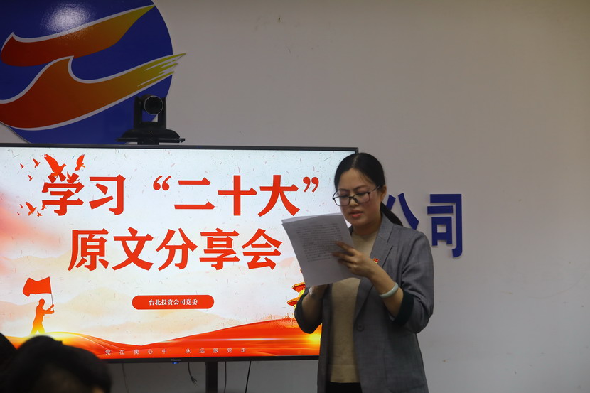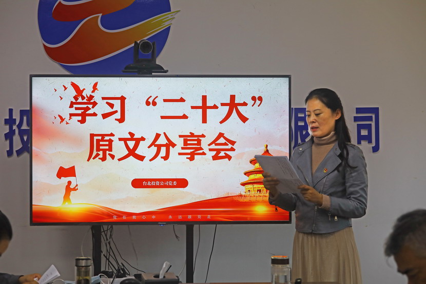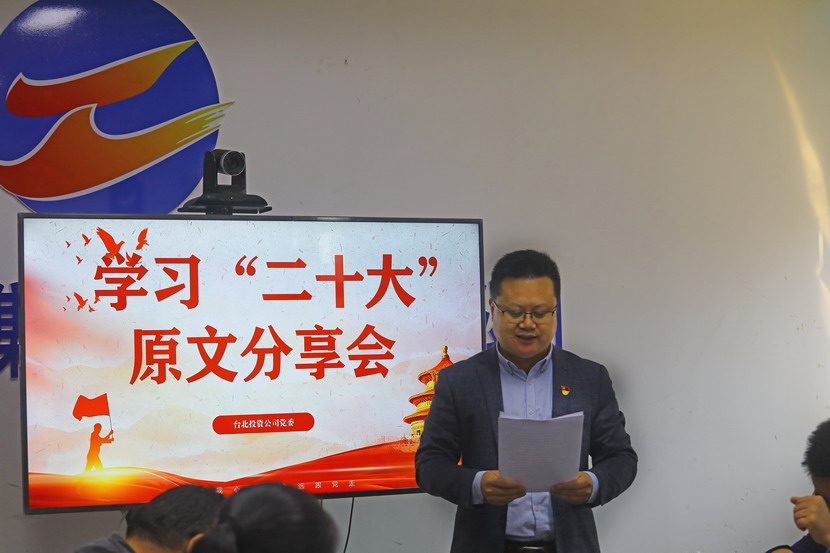 10月21日,臺北投資公司黨委組織召開黨的二十大報(bào)告學(xué)習(xí)交流會,每位同志閱讀報(bào)告原文,針對報(bào)告內(nèi)容結(jié)合工作實(shí)際,分享心得體會、暢談工作思路、謀劃未來發(fā)展。