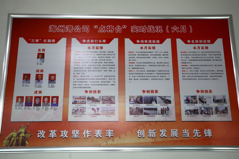 與會人員邊看邊聽講解海州灣黨支部規(guī)范化展板和本月書記項目的落實情況,以及在海州灣黨建活動室觀摩學習了上半年黨建基礎(chǔ)臺賬和活動影像。各黨支部就基層黨組織規(guī)范化及書記項目“點將臺”的落實情況作了匯報交流。黨委副書記楊善革針對各支部的黨建工作情況作了詳細的點評,指出各支部黨建工作中存在的不足,并要求各支部立即整改。