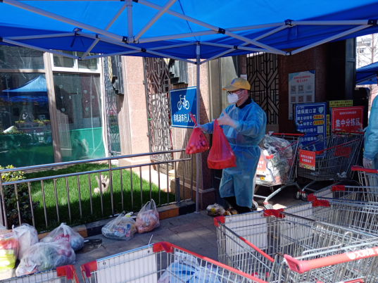 “大爺,您好,拿什么菜?”早上8點(diǎn),海州防疫臨時(shí)黨支部的江海凌同志開始一天的志愿服務(wù)。不過,他今天“改行”了,不再是信息采集員,而是化身鄰居菜籃子的“守護(hù)者”。