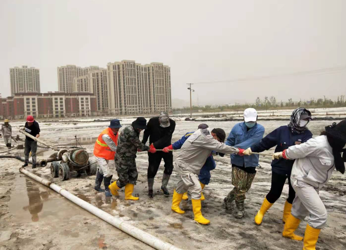 “百日會(huì)戰(zhàn)”完美收官,大家以黨史學(xué)習(xí)教育為精神動(dòng)力,弘揚(yáng)“四再”創(chuàng)業(yè)精神,淬煉“四拼”工作作風(fēng),展現(xiàn)出強(qiáng)有力的政治責(zé)任感和歷史使命感,在廣袤的鹽田上,用勤勞的汗水譜寫“四個(gè)最”的美麗華章。開局最早,搶抓春景好時(shí)光,開創(chuàng)歷史最早記錄,“破天荒”地從大年初十開啟扒鹽。戰(zhàn)線最長,以西灘機(jī)械扒鹽為起點(diǎn),歷經(jīng)東灘、大八組、海濱人工扒鹽,二組、西灘雙線齊上、火力全開,至東灘機(jī)械扒鹽落下帷幕,實(shí)現(xiàn)了“漫漫長征路”的圓滿勝利。歷時(shí)最久,整整百日一舉打破扒鹽歷時(shí)最久記錄,從冷冽刺骨的寒風(fēng),到烈日當(dāng)空的火熱,從臃腫的棉襖,到清涼的短袖。困難最多,面對(duì)天時(shí)不利的氣象條件,面對(duì)著堿廠關(guān)停的嚴(yán)峻局勢,面對(duì)著環(huán)保安全的巨大壓力,面對(duì)著人手不足的現(xiàn)實(shí)問題,團(tuán)結(jié)一心,攻堅(jiān)克難,迎接挑戰(zhàn),眾志成城筑鹽山,“暑霜春雪”顆粒盡歸倉。