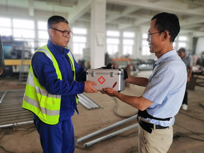 注重施工現(xiàn)場安全管理,規(guī)范電信、市政、綠化工程施工管理規(guī)范,班組安全生產(chǎn)實行“一班三檢”制,各班組進場前《安全交底》已經(jīng)形成常態(tài)化。為防患于未然,提高作業(yè)班組應(yīng)急反應(yīng)能力,翔立分公司購置一批急診箱并配齊防暑和急救藥品,送健康送安全防護進班組。
